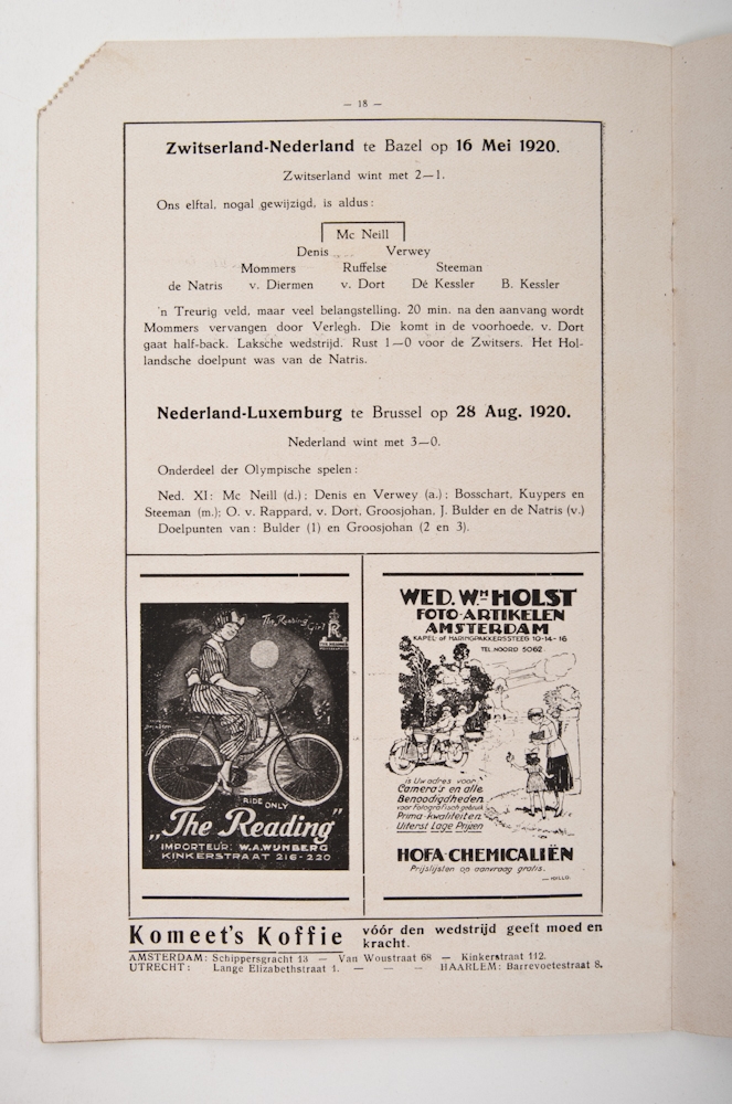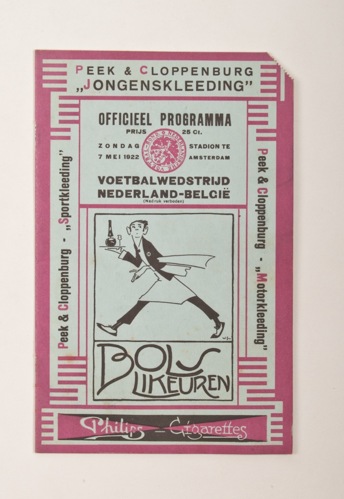 Programme 7 May 1922, stadium in Amsterdam. 24 p. Tear strips upper right corner have neatly been removed. Several results written by hand on final page. Good copy.