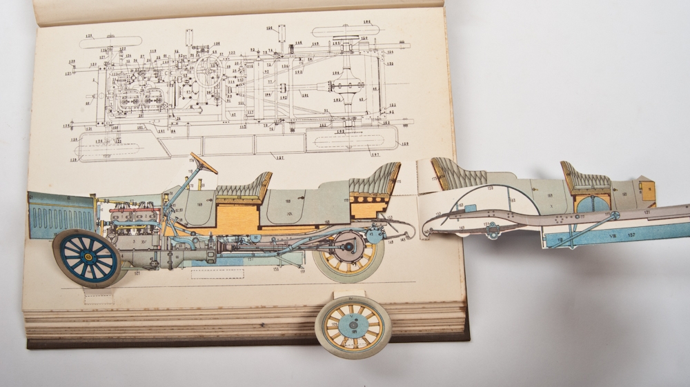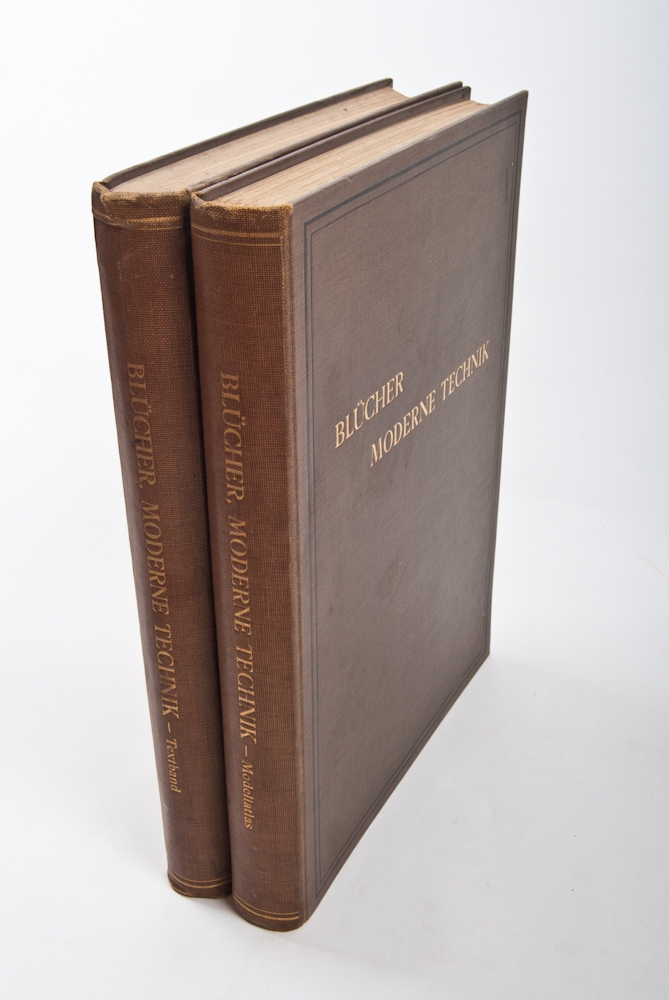 Die wichtigsten Gebiete der Maschinentechnik und Verkehrstechnik allgemeinverstandlich dargestellt und erlautert durch zerlegbare Modelle. H. Blücher. Contains 1391 pictures and 15 moveable models. Leipzig und Wien, Bibliographisches Institut, 1912. Text binding (632 p.) and Modelatlas in linen binding. In good condition.