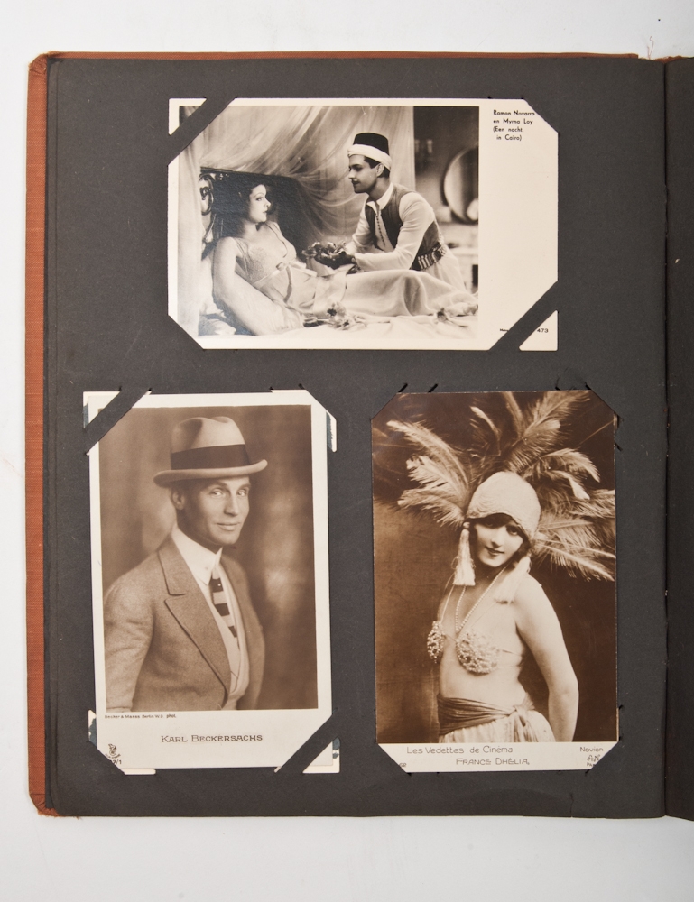 Album with 96 inserted postcards of movie stars from the 1920s and 1930s. All women. In good condition. + Album with 96 inserted postcards of movie stars from the same era, primarily women.