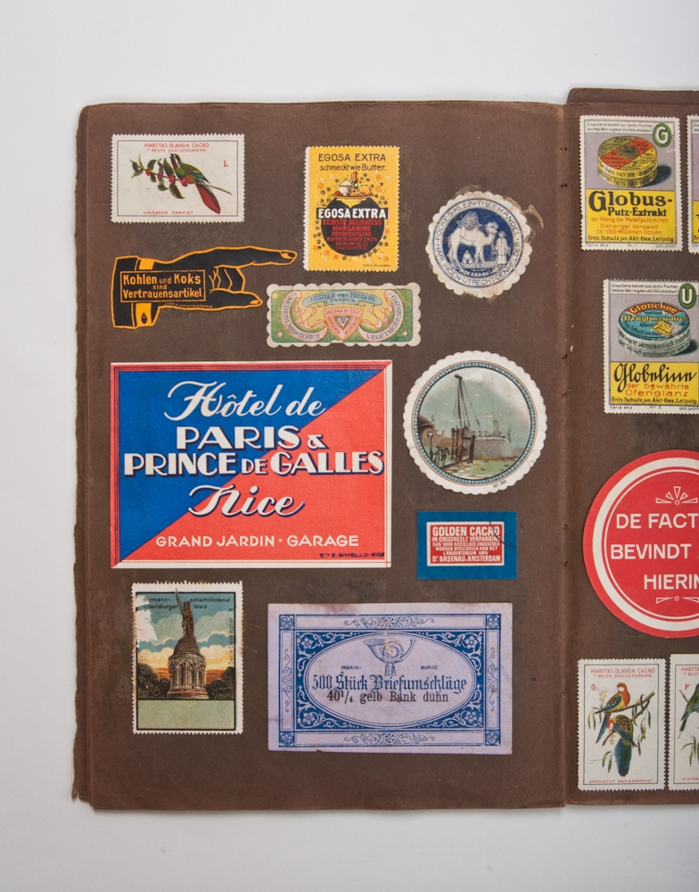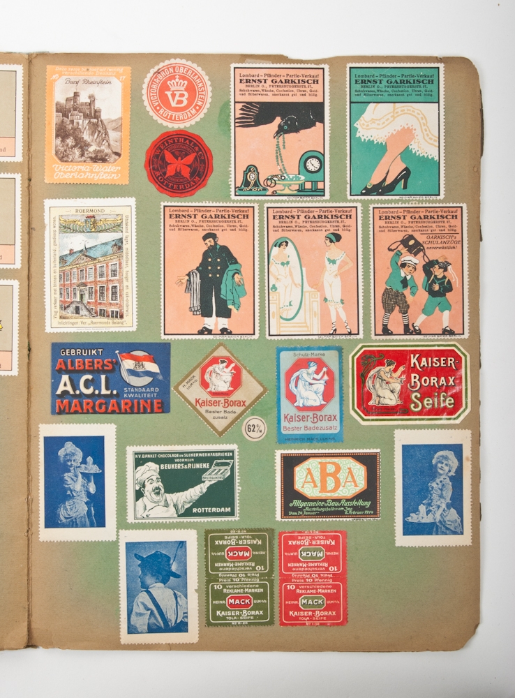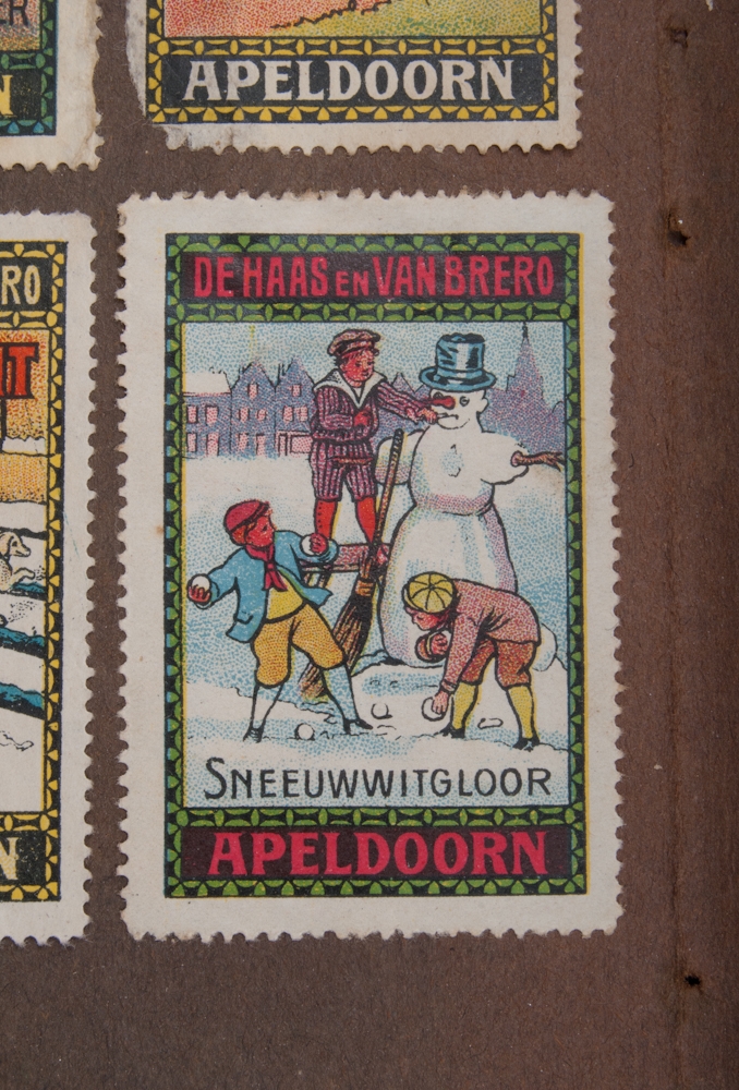 Stamp album containing 469 (loose) Dutch picture-stamps. + 2 other albums with glued in picture-stamps, partly Dutch, partly German. Total of 908 picture-stamps.