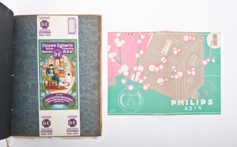 Amsterdam, 1930. Preface by Henri Kuijpers. With several attachments such as packaging for Kresna Cigarettes, Douwe Egberts etc. and a small Philips poster.