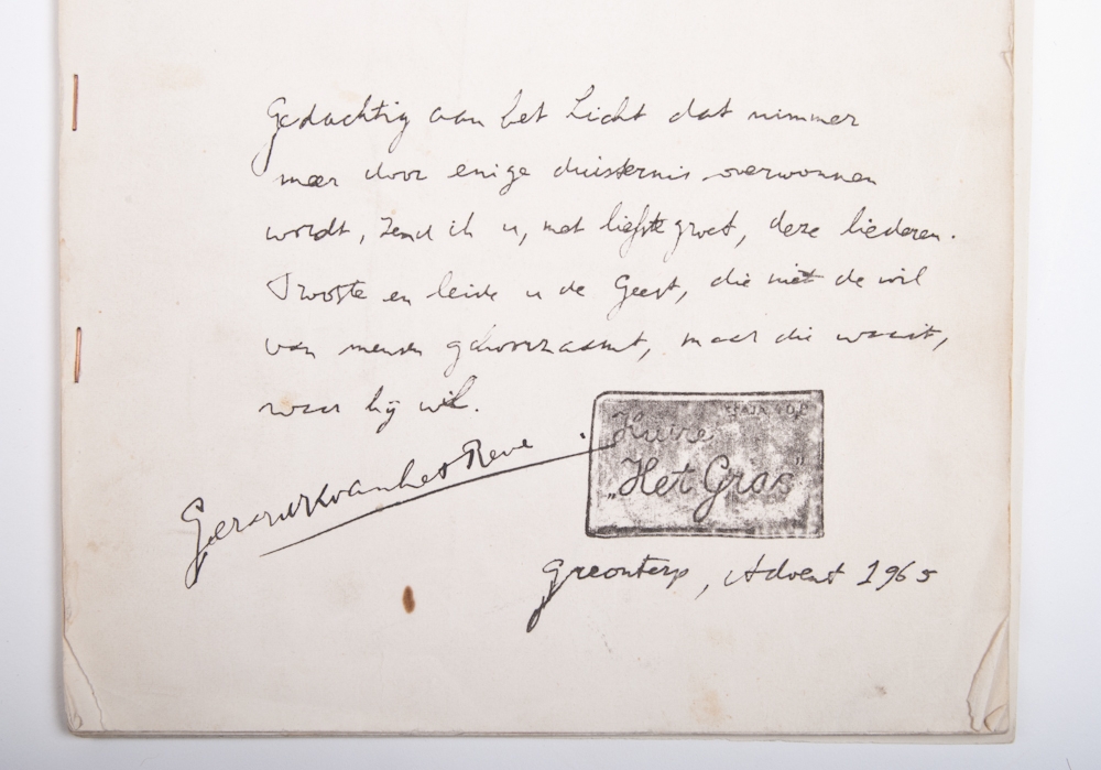 66 p. Signed on front leaf and several additions/corrections have been made. Typ. Frits de Boer. Stencilled and stapled edition.