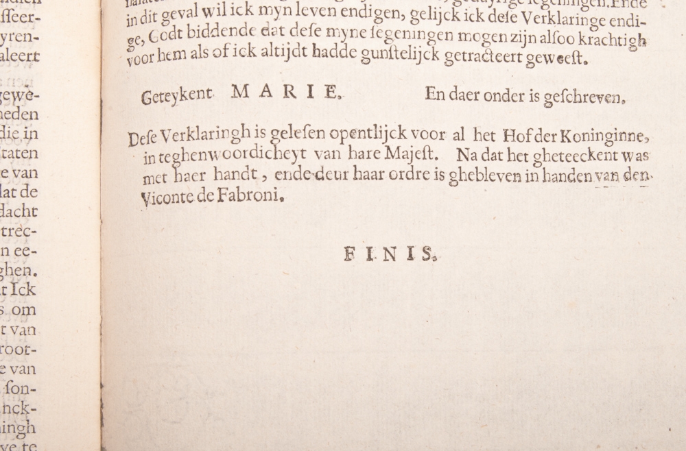 Historical document, translated from French and originally published in London in defence of a previously published 'false' writing concerning Maria's departure from the Netherlands.