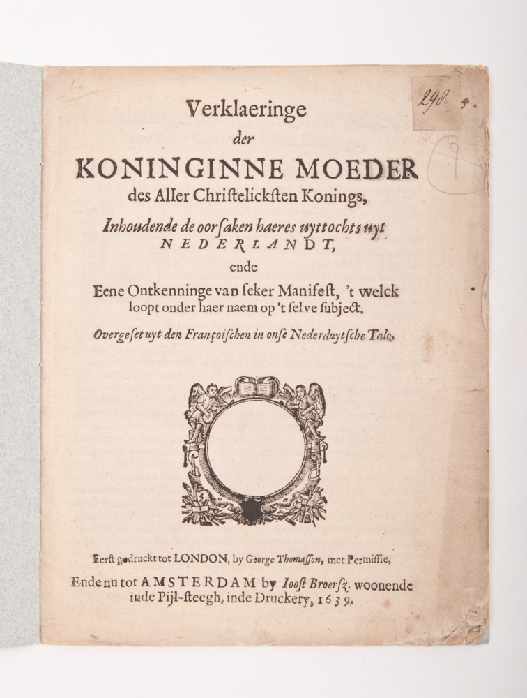 [Pamphlets] (Maria de Medici). Verklaeringe der Koniginne Moeder des Aller Christelicksten Konings, inhoudende