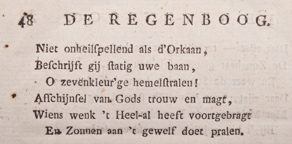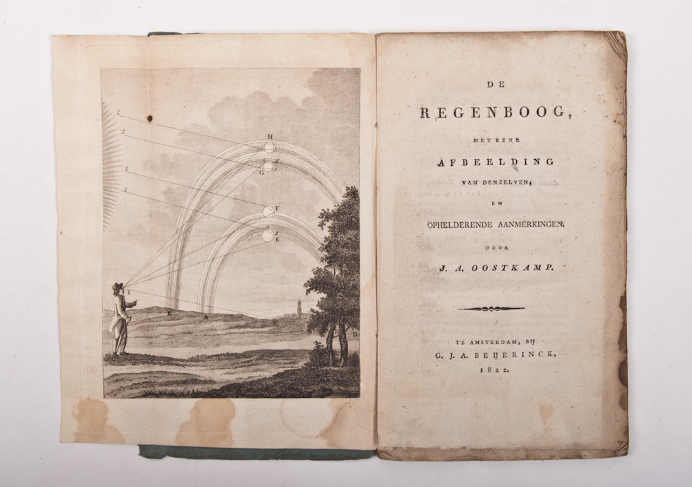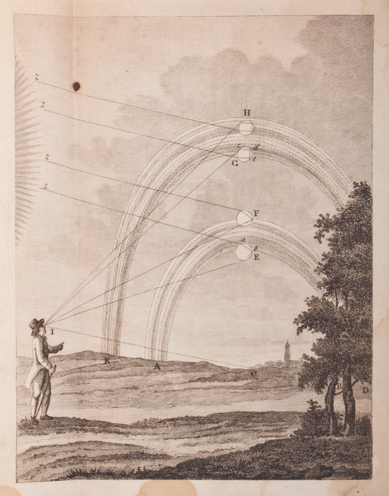 8vo., paper wrappers. IV, 48 p. folding copper engr. of different stages of a rainbow, rare. Several damp spots.