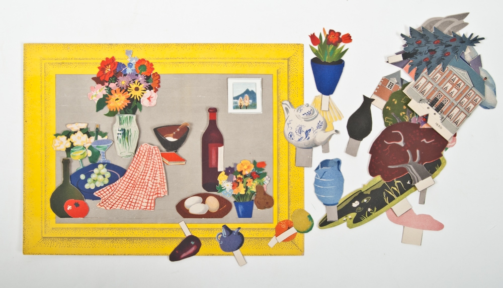Stadsgezichten, landschappen en stillevens samenstellen. 2 Insert decors, an envelope containing separate parts that can be inserted, and the accompanying original folding booklet that is usually missing.