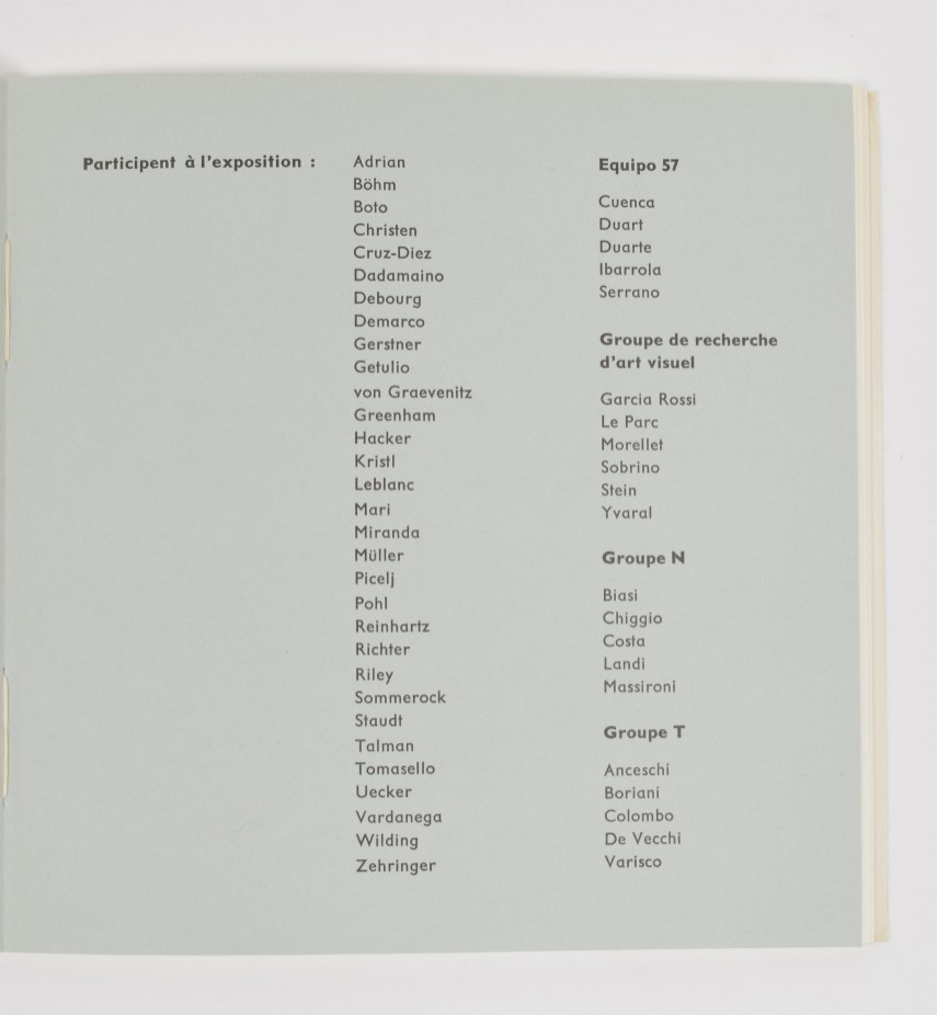 Nouvelle Tendance (New Tendency) was an art movement founded in Yugoslavia in 1961, but soon became international in scope. Distinct groups of artists who became associated with Nouvelle Tendance included GRAV, Gruppo T, Gruppo N, and Zero. Included in this lot are 2 catalogues of influential group shows: