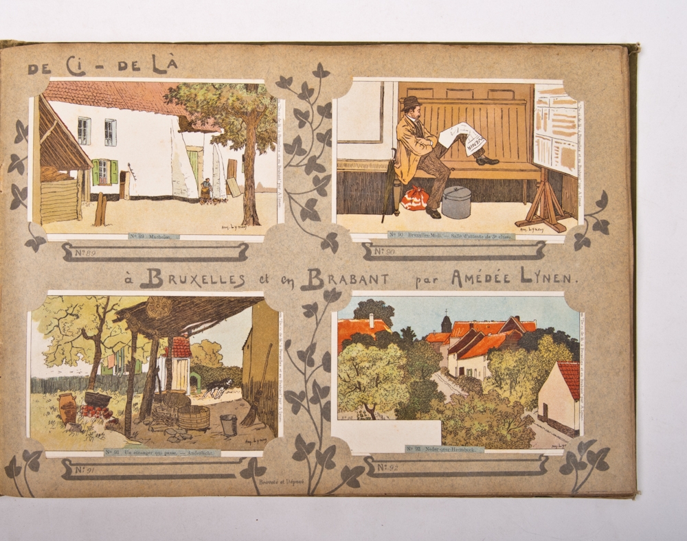 200 Cartes Postales illustrees par Am. Lynen. Green oblong linen album with 191 out of 200 art nouveau postcards by Amedee Lynen (1852-1938).