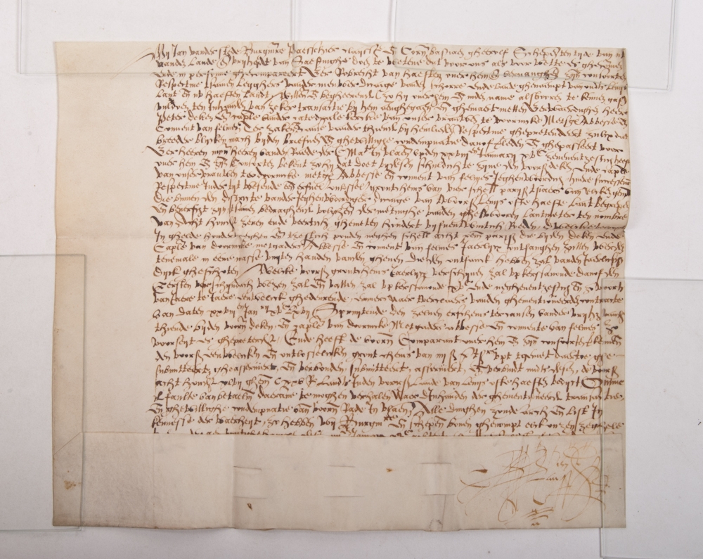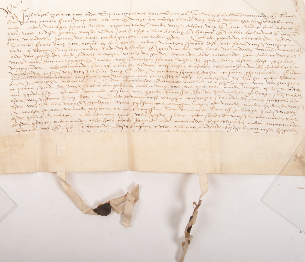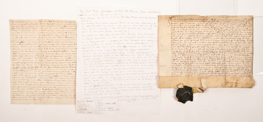 3 archive pieces, 16th century. Handwriting on parchment, different sizes (folded). With some remains of seals. Contains: a work concerning "Blaesecop, Everinge en Scheyinghe", 1507. - een stuk verleden voor de schepenen van Amsterdam betreffende Frans Dirix zoon als man en voogd van Stijn Albert Diricx zoon en Arentgen Simons dochter die zowel roerende als onroerende goederen in onderpand geven, 1546. - een stuk verleden voor de schepenen "vanden lande ende Vryheydt van Saeftinghe", 1568. Vermelde naam Robrecht van Haeften.