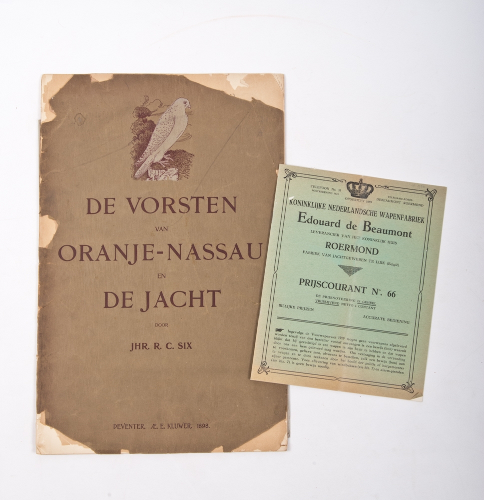 Added: Prijscourant, nr. 66 of the: Koninklijke Nederlandsche Wapenfabriek. Edouard de Beaumont. Leverancier van Het Koninklijk Huis. Roermond. Fabriek van Jachtgeweren te Luik. Total 2.