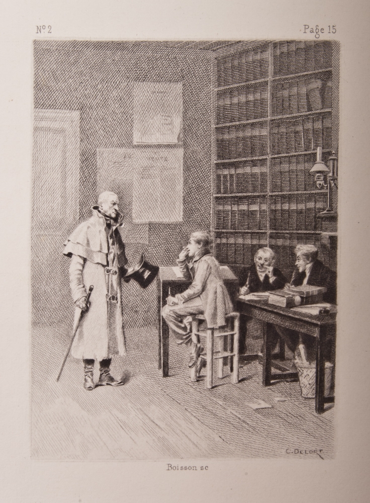 H. de Balzac. Paris, Calmann Lévy, 1886. In gilt dark blue morocco private binding, autograph 'Asper Frères' on spine. 8vo, 176 (4) p. With 6 engravings of Delort after Boisson. Nr. 118 out of 225 copies.