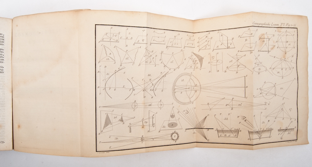 8vo., half linen with cardboard sides, XXXII, 540 p. with 8 folding copper engravings.