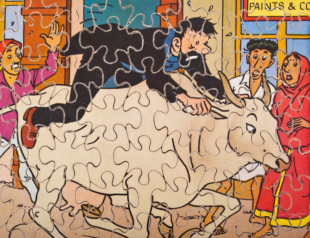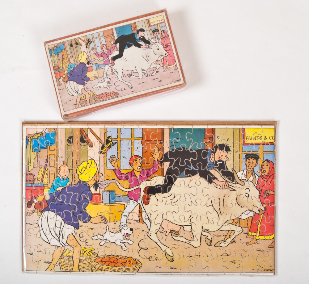 1952. Tintin in Tibet. Complete in box. Some small stains on the box, otherwise in good condition. One of the two hard-to-find puzzles in a series of six.