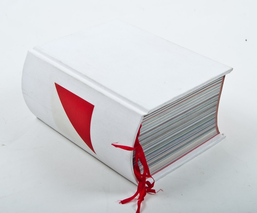 Irma Boom/ Johan Pijnappel, voor de Steenkolen Handelsvereniging, 1996. 2136 unnumbered pages, 11 cm. thick and 3,5 kilos in weight. Jubilee issue that caused a true sensation at publication. Printing technically this item is a true piece of art, as it combines laserprint, perforations, complex lattice work, etc. Circulation of 3500 copies. With cassete.