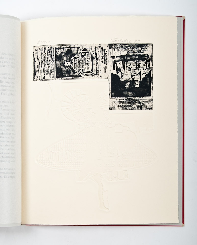 Sechs Erzählungen. Christoph hein, Dieter Tucholke. Sisyphos-Presse Berlin, 1991. Nr. 21 out of 300 copies. Folio, printed on Popset paper, bound by hand with 6 etchings partly in relief print. In slipcase.