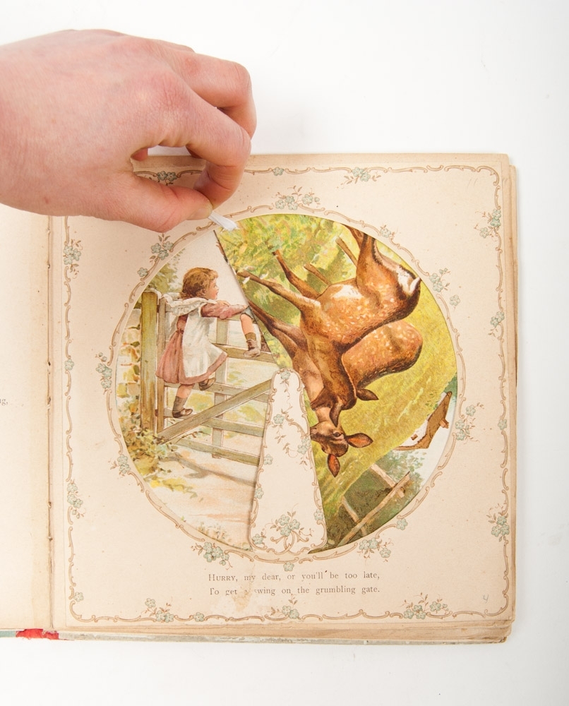 "A Novel Picture Book with Dioramic Effects" (binding). Exquisite book with round plates. Most leaves loose in (sl. stained) binding.