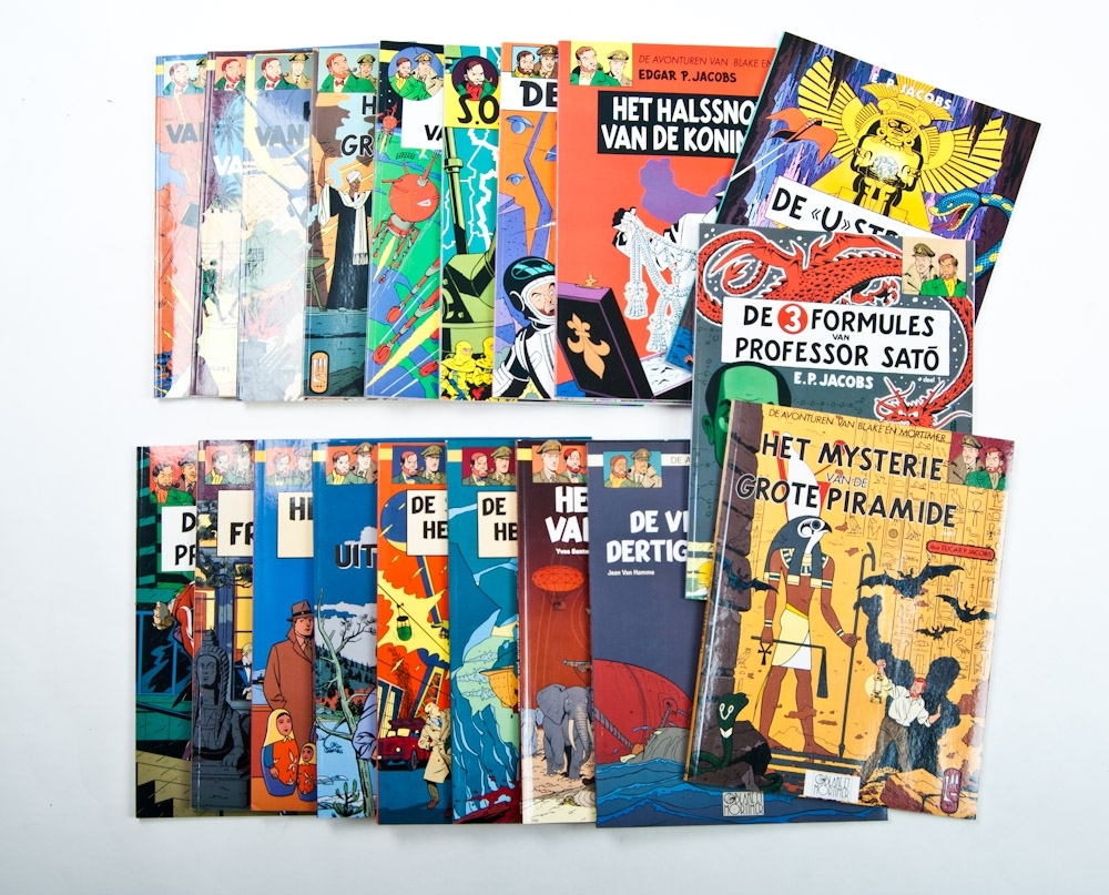Edgar P. Jacobs. Published by Blake en Mortimer, Brussel, 2001-2009. Issues 0-19 from the series. All in good condition. Lacks issue 6 'Het Gele Teken'.