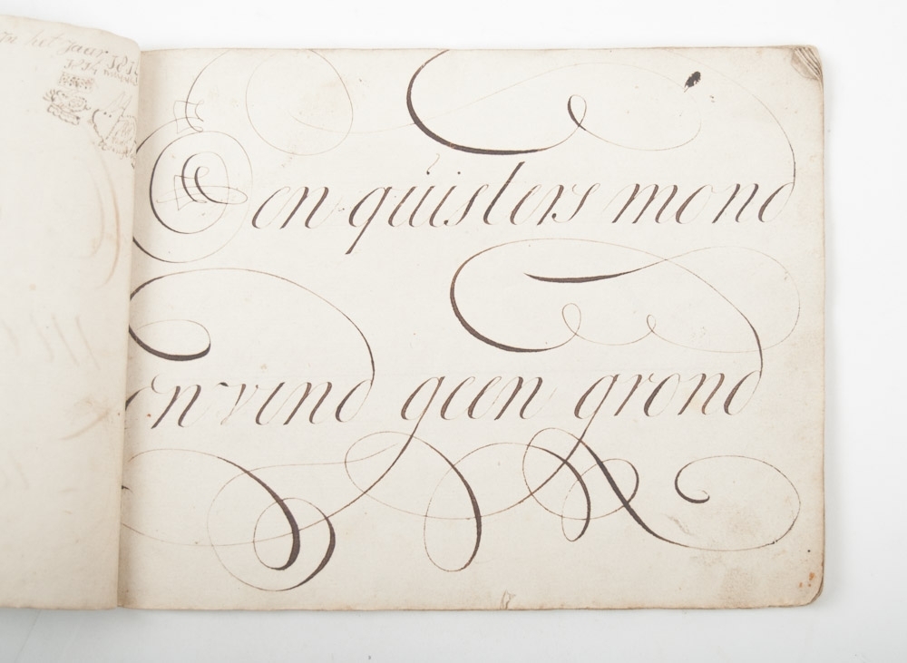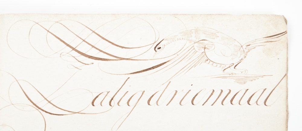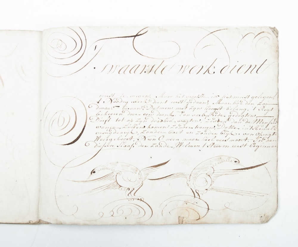 Album of Cornelis Drijdijk, 1785, 12p. With the poem ''T Swaartse werk dient'' on the final page, several texts have been decorated with birds.