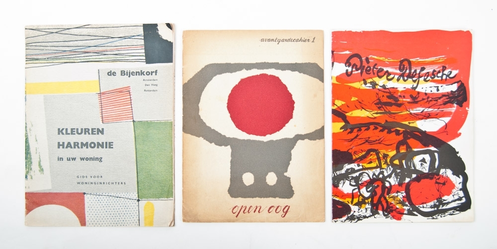 1946, red. Wim Brusse, Jaffee, Kloos, Rieveld, Sandberg, Mat Stam + Pieter Defesche, cat. 336, stedelijk museum Amsterdam, 1963. Cover litho Defesche + De Bijenkorf, Kleuren Harmonie in uw woning. Guide for home interior decorators.