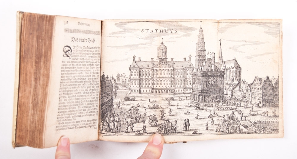 12mo. vellum, sl. loose in binding. Frontispice with the Amsterdam coat of arms in copper engraving with Dutch text. [23],567,(1) p. Complete with 57 engravings, most double-p. and several folding. Some signed by Veenhuysen or Webbers. Appendix by P.V. Aengelen. In very good condition.