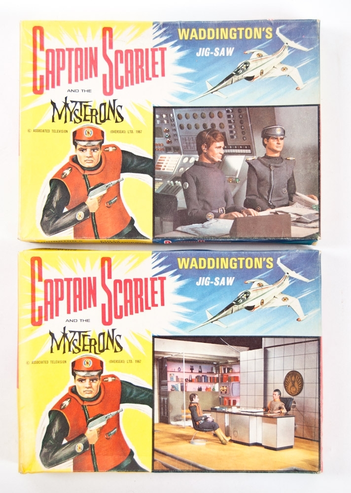 Made by Louis Marx & Co, Swansea, 1966. Game in original box, in impeccable condition + Captain Scarlet and the Mysterons, puzzle with 250 pieces. Des nr. 927: Captain Grey Directing Operations + Des no. 930, Captain Brown and the World President. Both in box and in good condition.