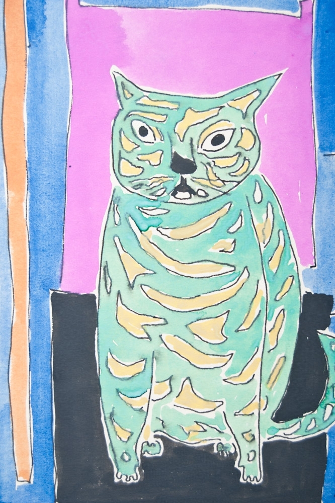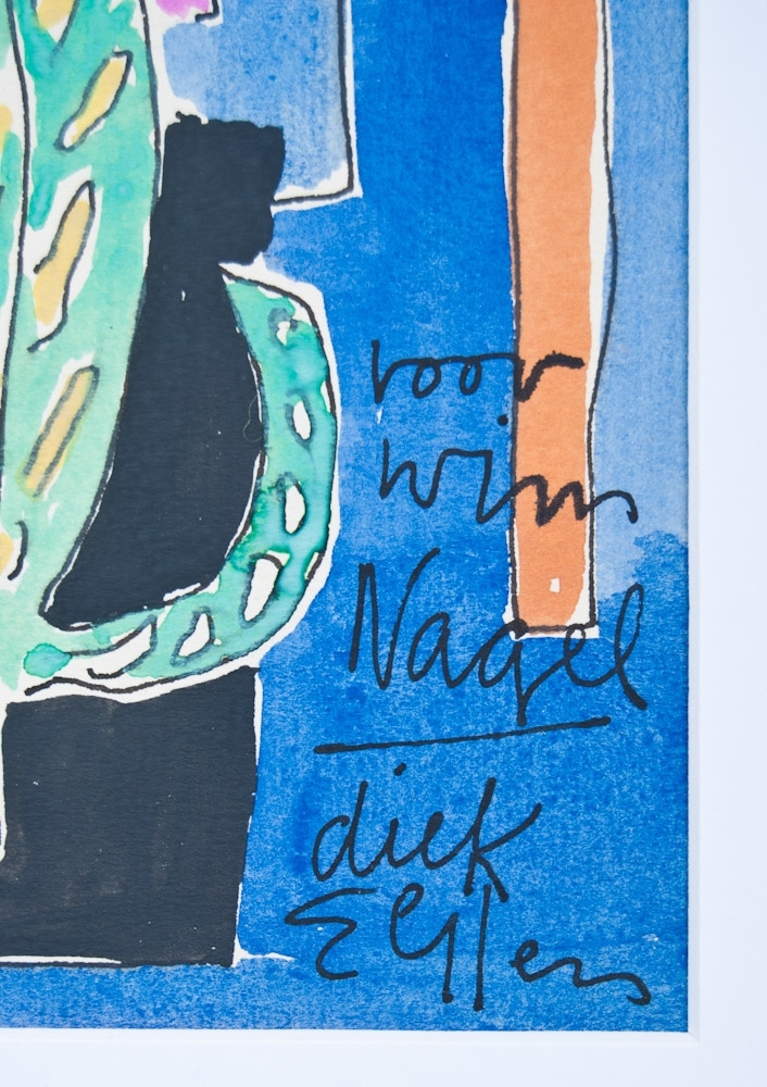 "Poes". Watercolour with dedication to Wim Nagel (pseudonym J.B. Charles). 27,5 x 19,5 cm. Under passe-partout.