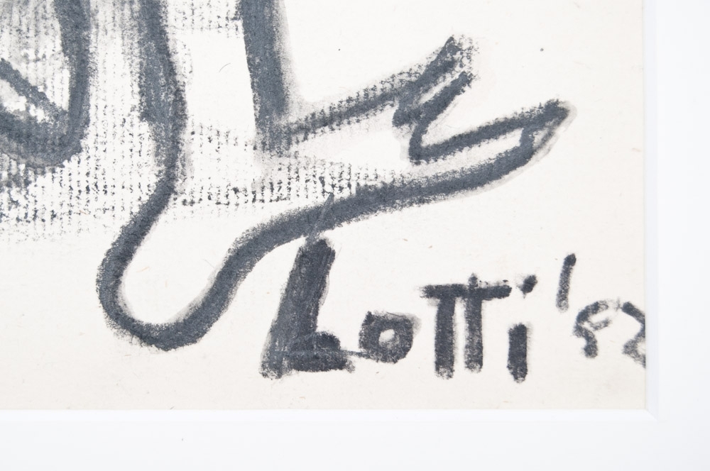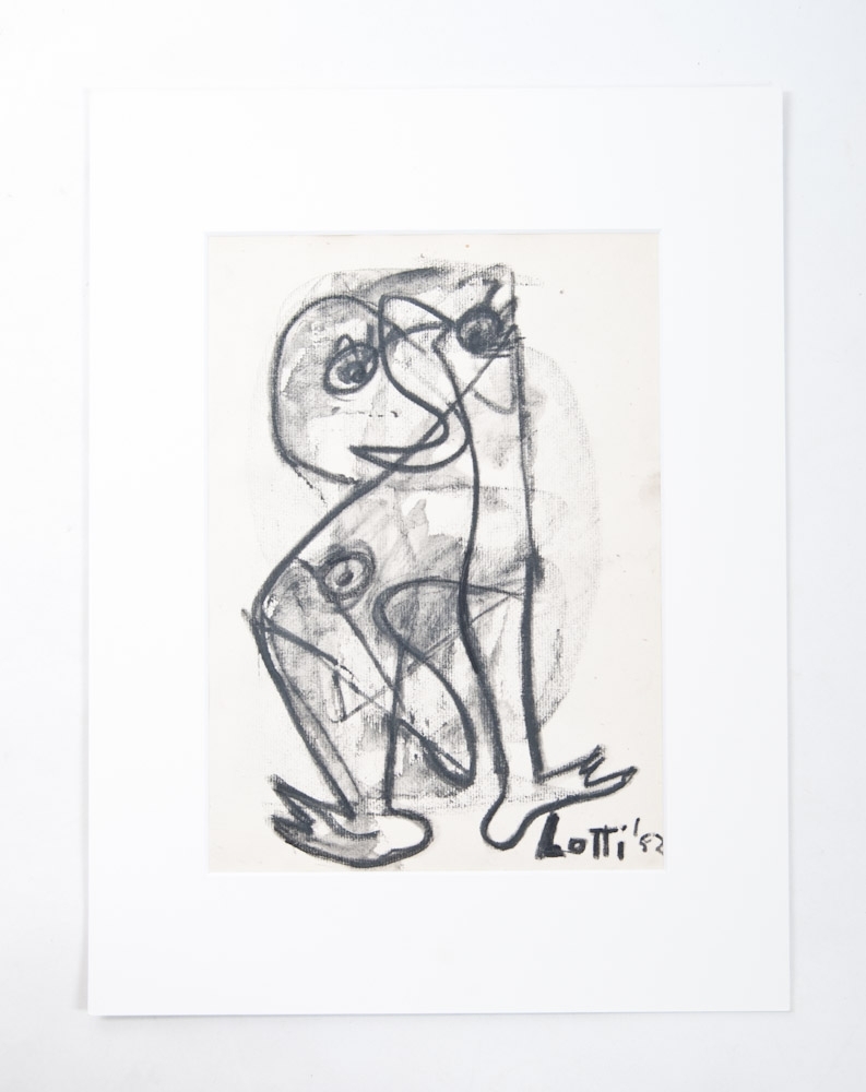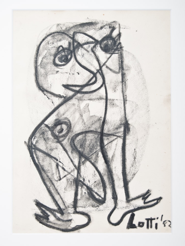 "Fantasie figuur", 1952. Watercolour in black-and-white under passe-partout.