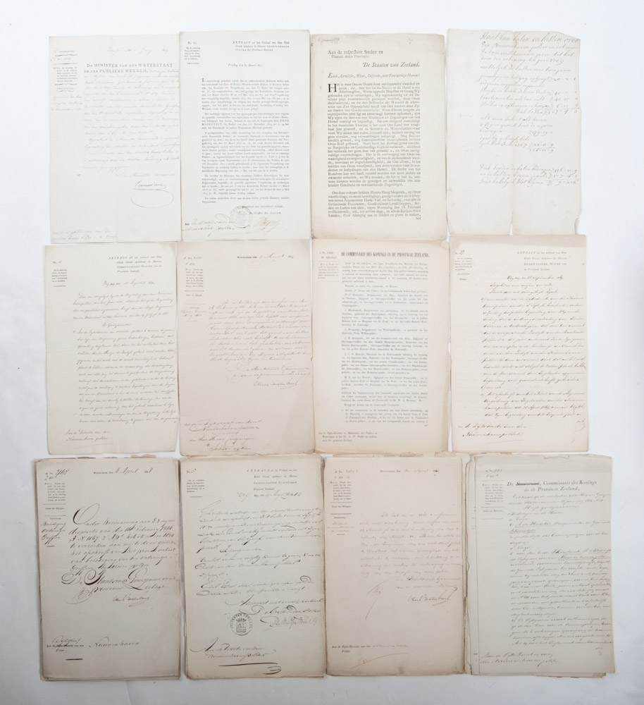 Historical documents on the province of Zeeland. Most are in good condition. E.g. 'Staat van baten en lasten over den Nieuwerhaven polder', 1769 + 'Extract uit het Verhaal van Hun Edel Groot Achtbare de Heeren Gedeputeerde Staten der Provincie Zeeland', 1821 - and ca. 40 others.