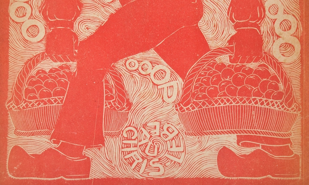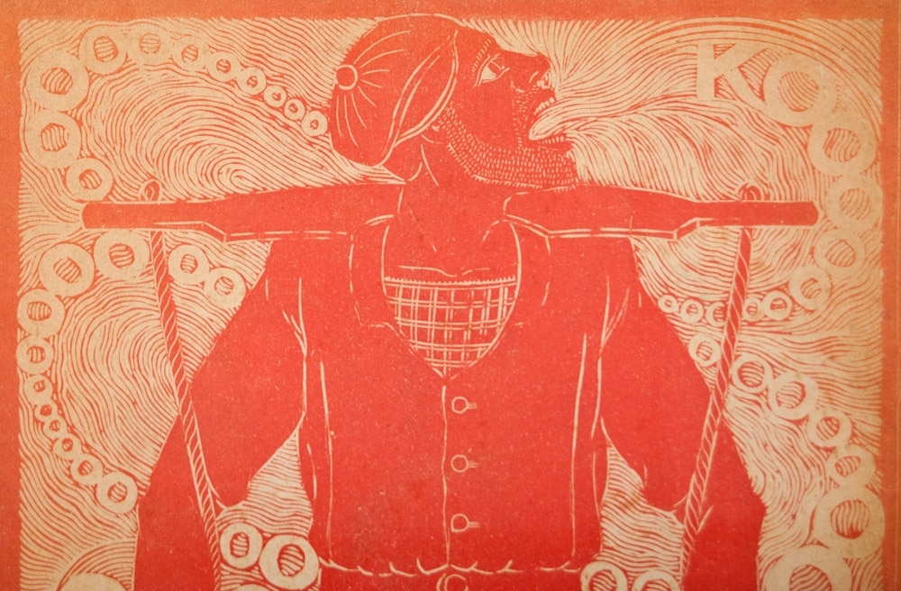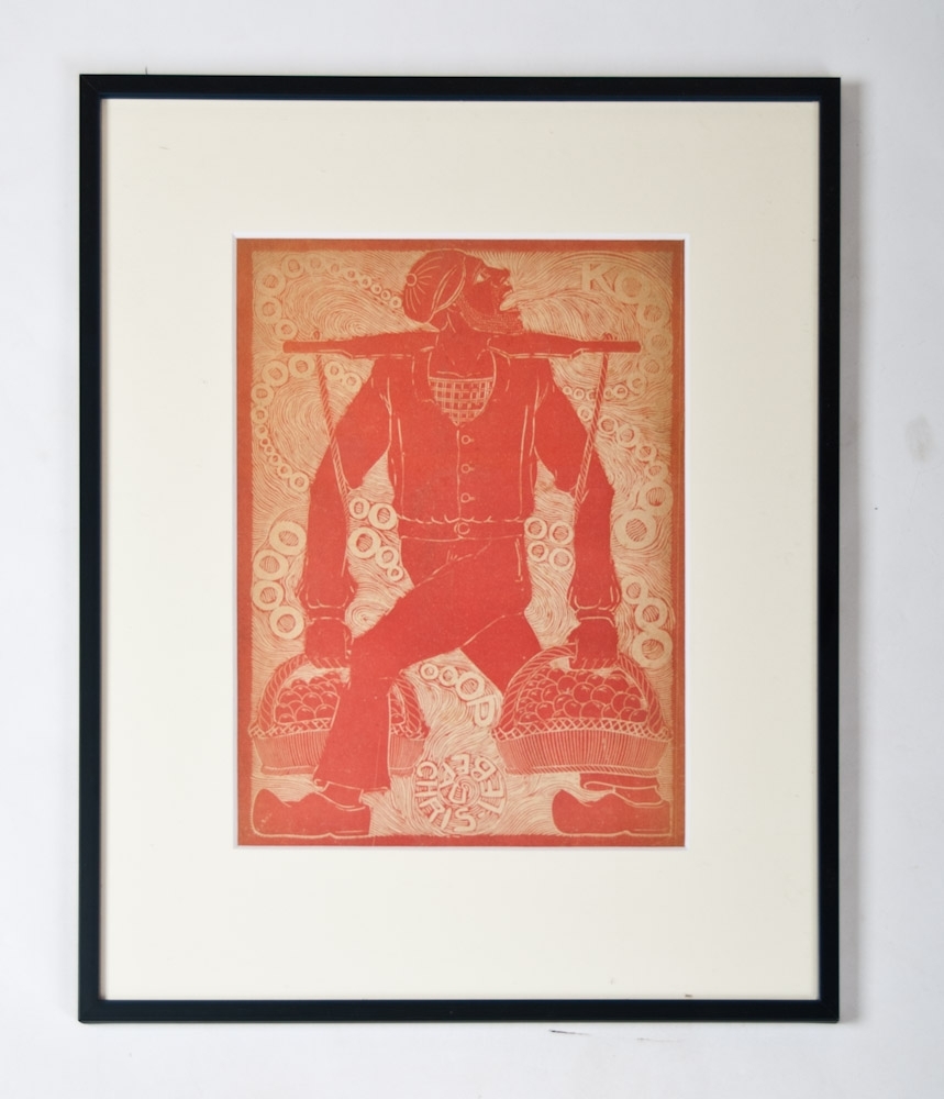 Koooooooooooooooooop. Woodcut in red. ca. 1918. 28,5 x 21 cm. In passe-partout behind glass.