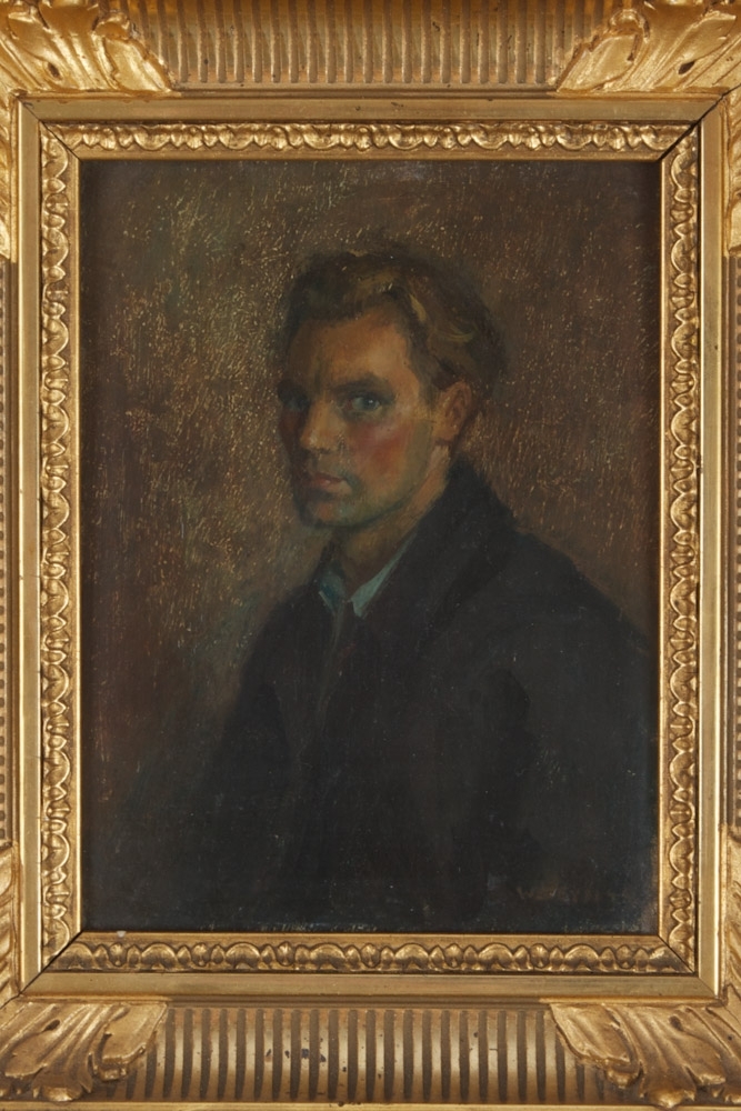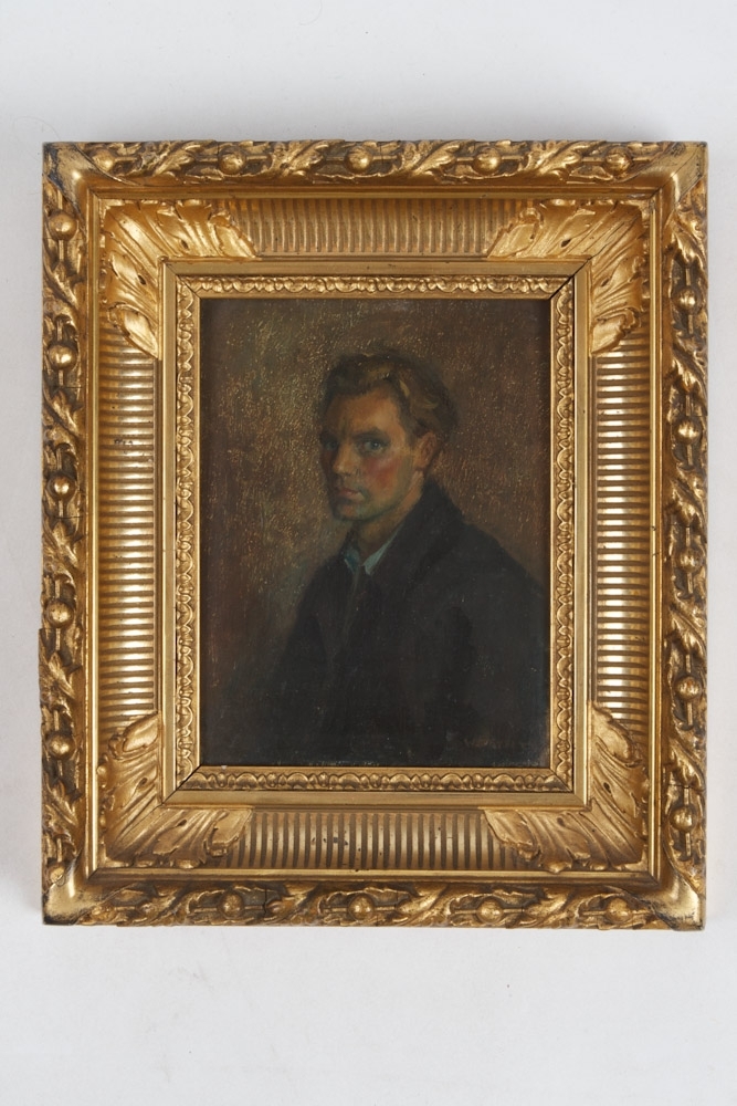 Oil on panel, 16x12 cm., signed "W. Steyn 44" lower right corner, gilded frame.