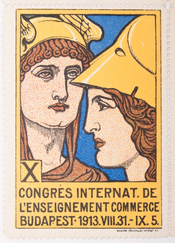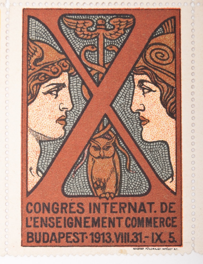 Budapest 1913 Internat. Kongress f. Kaufm. Bildungswesen. Magyar Pöldrajzi intezet M.T. Two complete sets of 3 picture-stamps.