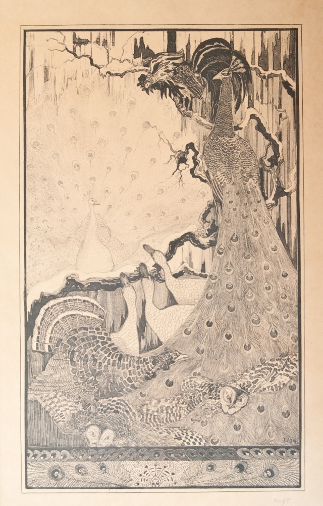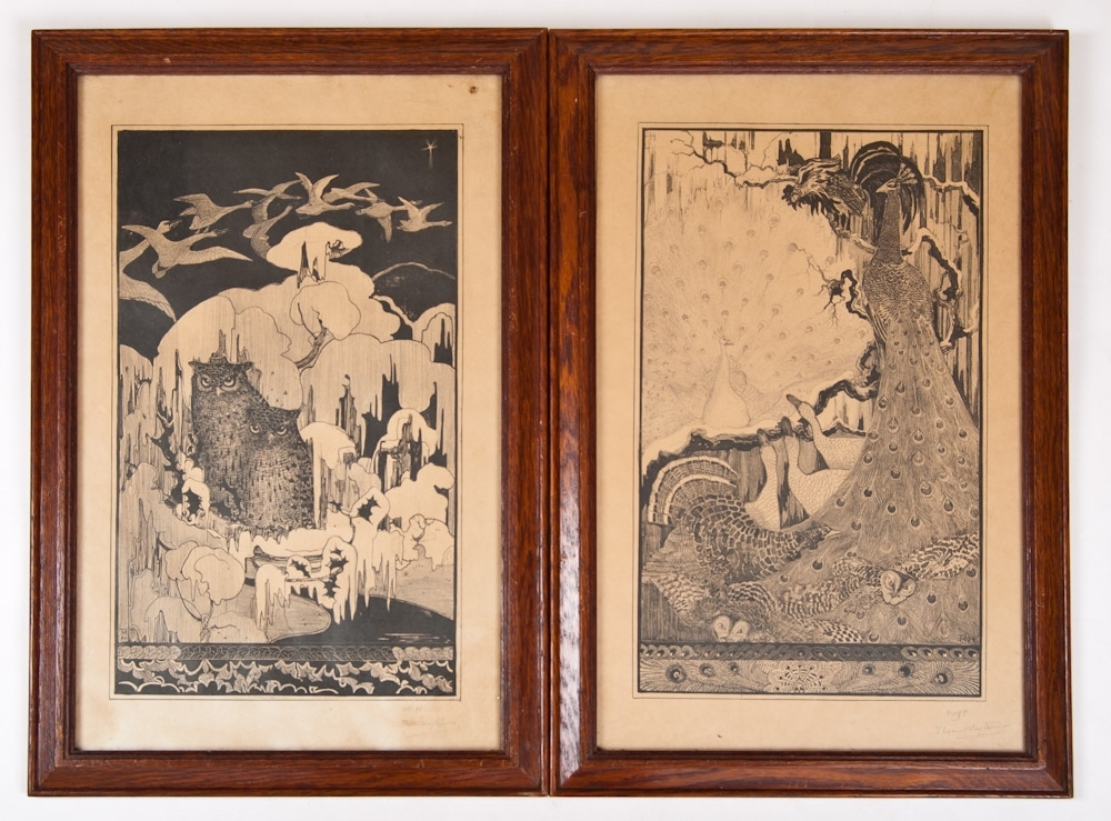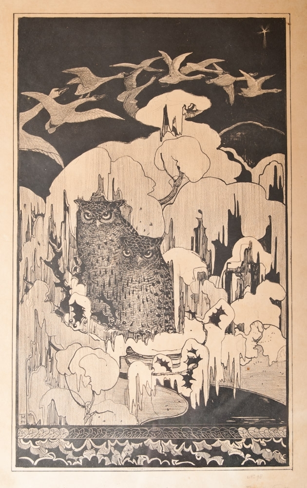 "Kerst en Nieuwjaar" Lithography in two parts. 1894. Signed and numbered, nr. 98. 48 x 30 cm. each. In frame behind glass.