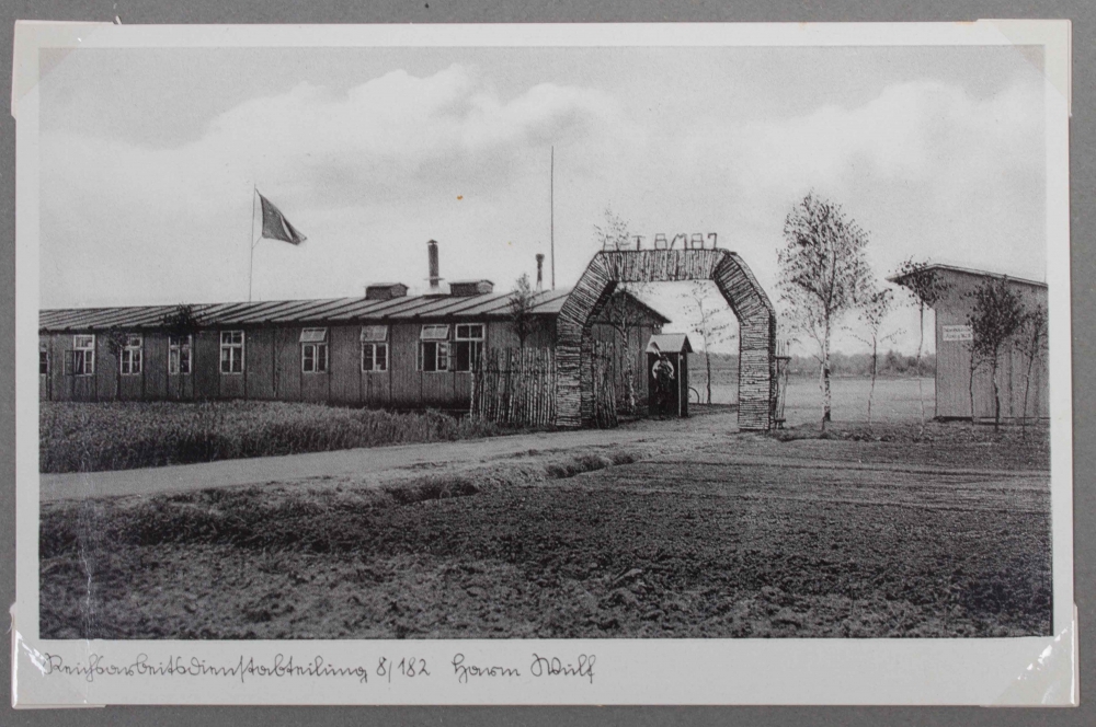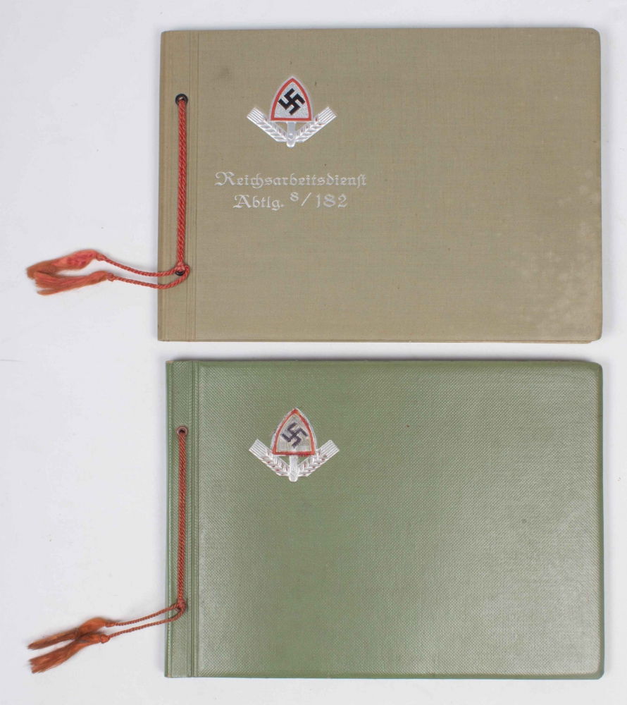 The modern photos are partly photos of photos (ex-O. Spronk collection) and do not belong in this album, it is possible that the old photos inserted with modern corners were originally included loose with the album. Also inserted with modern corners is an original "Ausweis für aktive Teilnehmer des Reichsparteitages" (1936), of the Arbeitsdienst Abteilung 9/182.