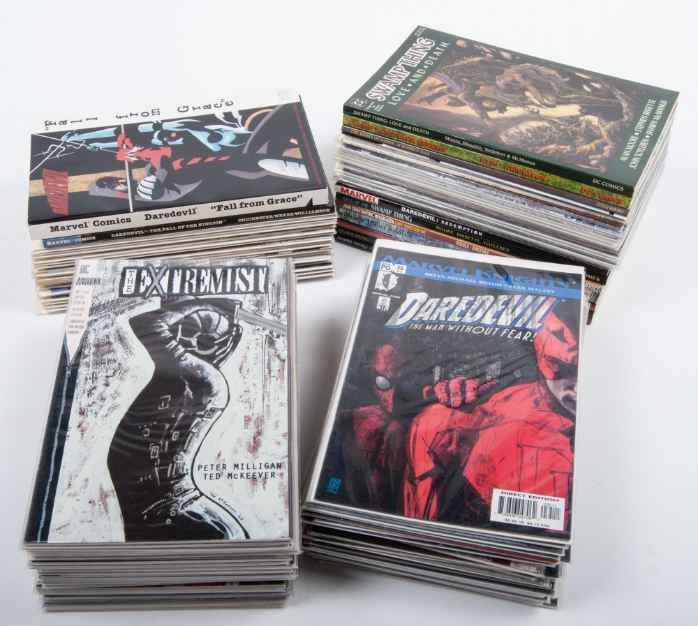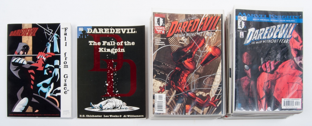 Marvel Comics: Daredevil Redemption; The Fall of the Kingpin; Fall from grace; Sc. + Marvel Comics, Knight: Daredevil nos. 1-91 (lacks nos. 55, 64, 65, 66, 75, 76, 77, 85, 86, 88, 89, 90), polybagged.