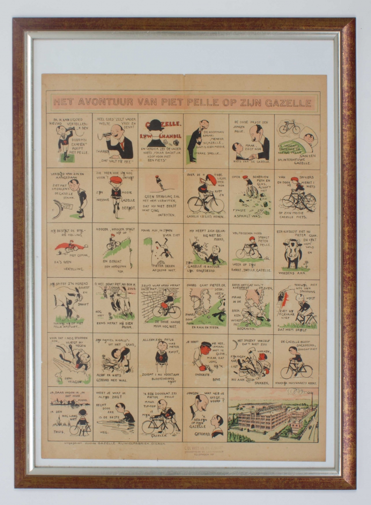 Shop poster, ca. 1930. 62 x 47 cm. Has been folded. Framed under glass.