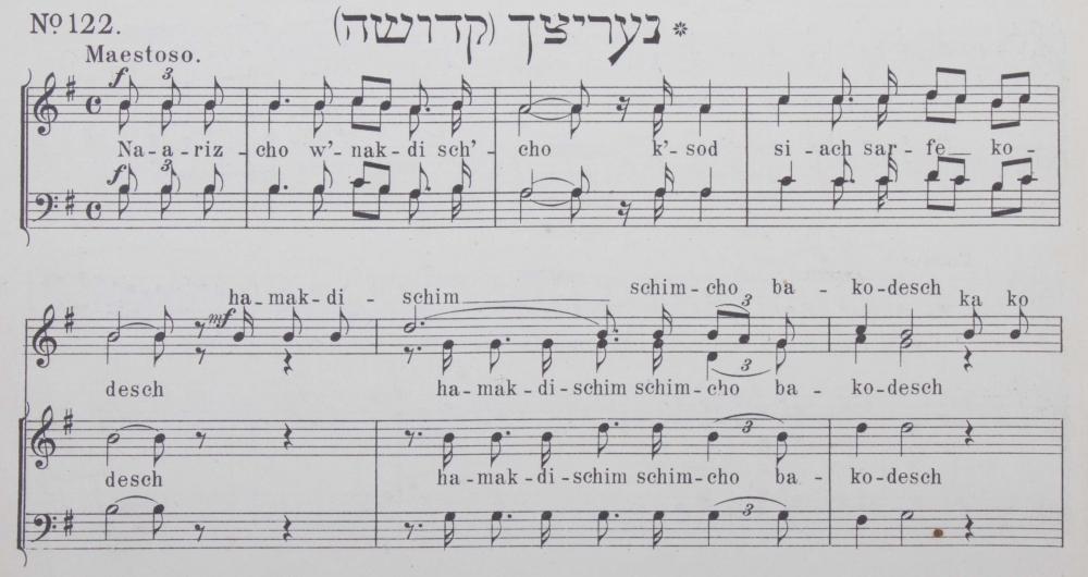 The musical legacy of Baruch Schorr, Cantor of the city synagogue "Gouden Roos" of Lemberg, published by his son. Schorr (1823-1904) was Cantor in various Shuls, including the Attorney Street Shul. His compositions were popular. He wrote such compositions as the operette "Shimshen hagiber (Samson, the Hero)". Twice he was committed to the famous Golden Rose synagogue in Lemberg for a longer period of time. This synagogue was built in the 16th century and was considered one of the most beautiful synagogues of Europe. It was blown up by the Germans in 1941.