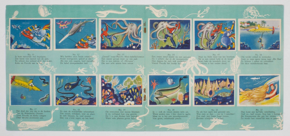 Rotterdam, ca. 1952. Square stapled albums each with 40 pictures. Atlantis is complete, Reis naar de maan lacks 14 pictures. With two original labels.