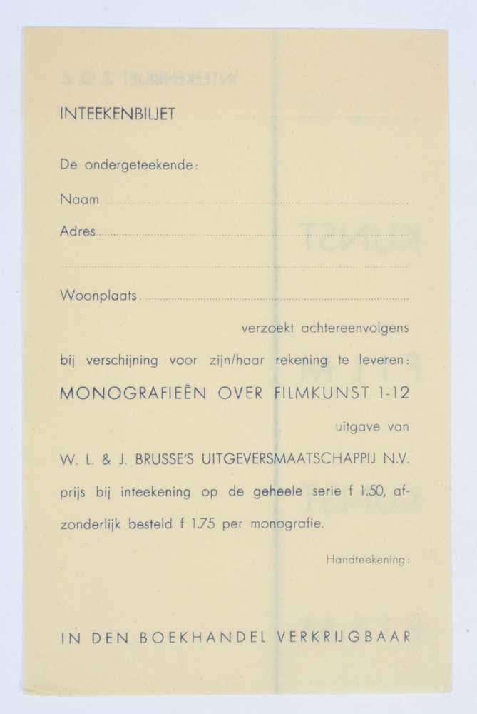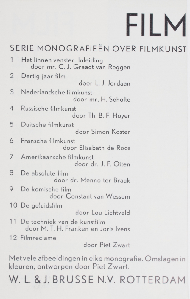 W.L. & J. Brusse, Rotterdam, 1931. 17 x 11 cm. Transparent cover with inlay.