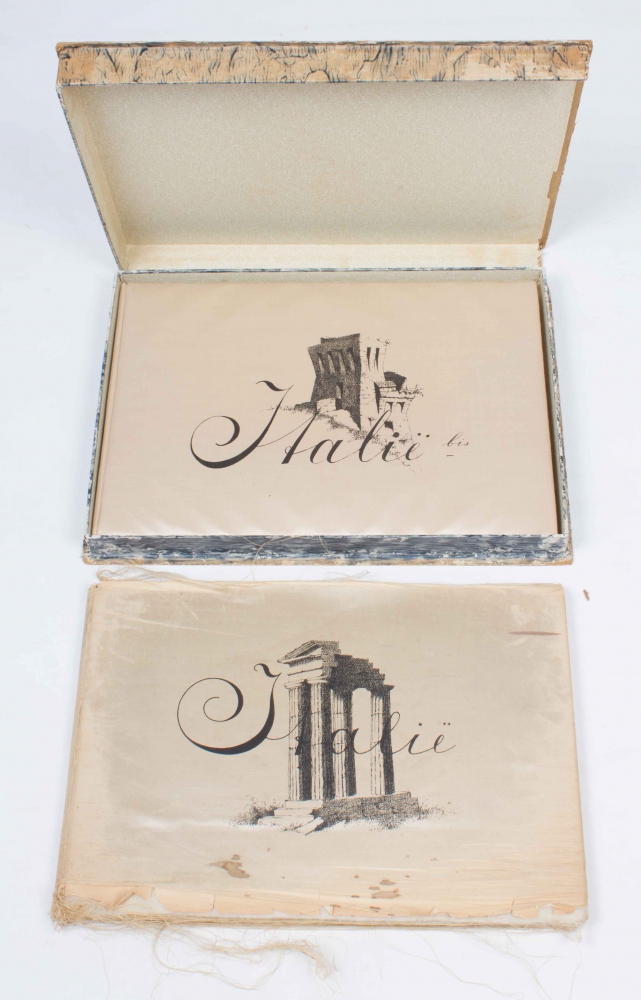 Rare travel album with sketches and drawings which Elie van Rijckevorsel had published for family and friends. The Italië album printed in name of Mevrouw de Vos van Nederveen Cappel-Keiser, the Italië bis album printed in name of W.F.H. van Rijckevorsel. Both albums signed by the artist. See: Dr. Elie van Rijckevorsel, 1845-1928, patrician and meteorologist, by mr. L.J. Pieters. In: Rotterdams jaarboekje 1984, p. 287-309.