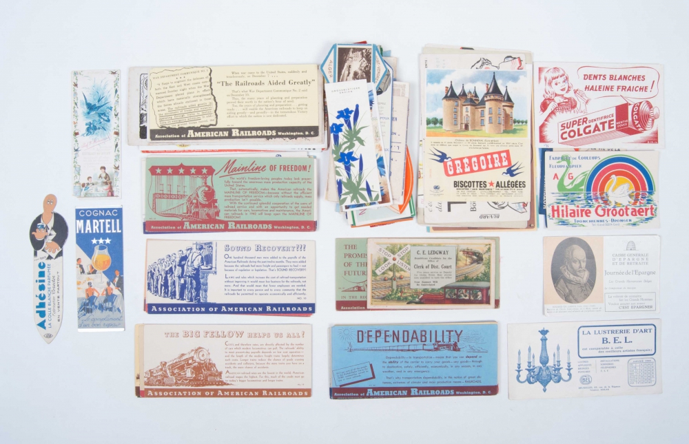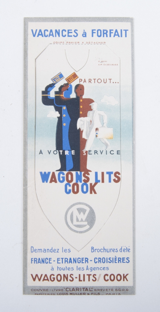 Ca. 40 blotters relating to trains + another 55 blotters and bookmarks such as Vacances à forfait. A votre service Wagons Lits Cook. Design A.M. Cassandre.