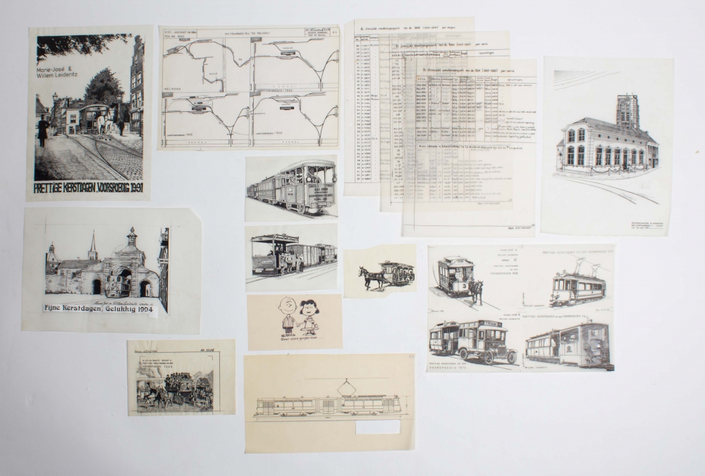Large lot with several hundreds of original drawings and sketches on tracing paper. Most of trams and trains in the Netherlands. Often used for illustrating books and promotional materials by his hand.
