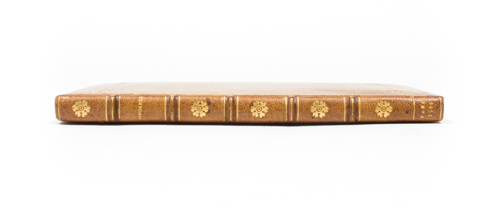 Title accurately retouched in pen (paper there thin); bookblock at the beginning trifle waterstained in top corner and here and there slightly foxed. Good, finely bound copy.