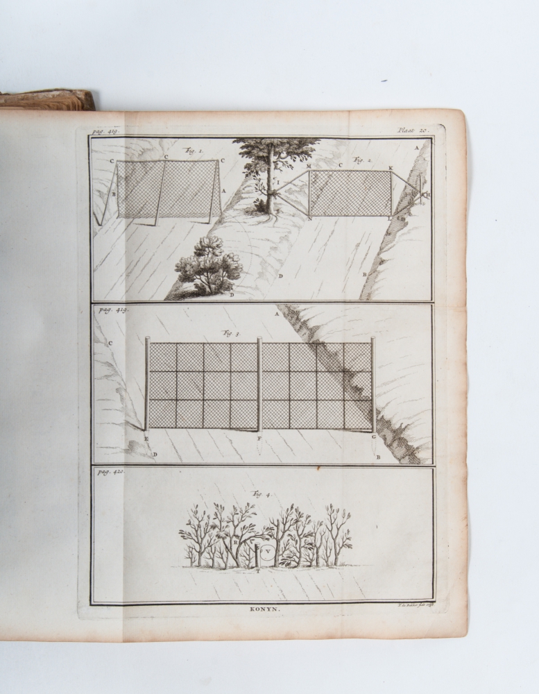 vervattende vele middelen om zyn goed te vermeerderen, en zyne gezondheid te behouden. Leiden/ Amsterdam, S. Luchtmans/ H. Uytwerf, 1743. 2 volumes (6), 616; (2), 617-1496 p., with engraved frontispiece by Jan Punt and 80 folding, engraved plates by F. de Bakker, contemporary blindstamped vellum, 4to.